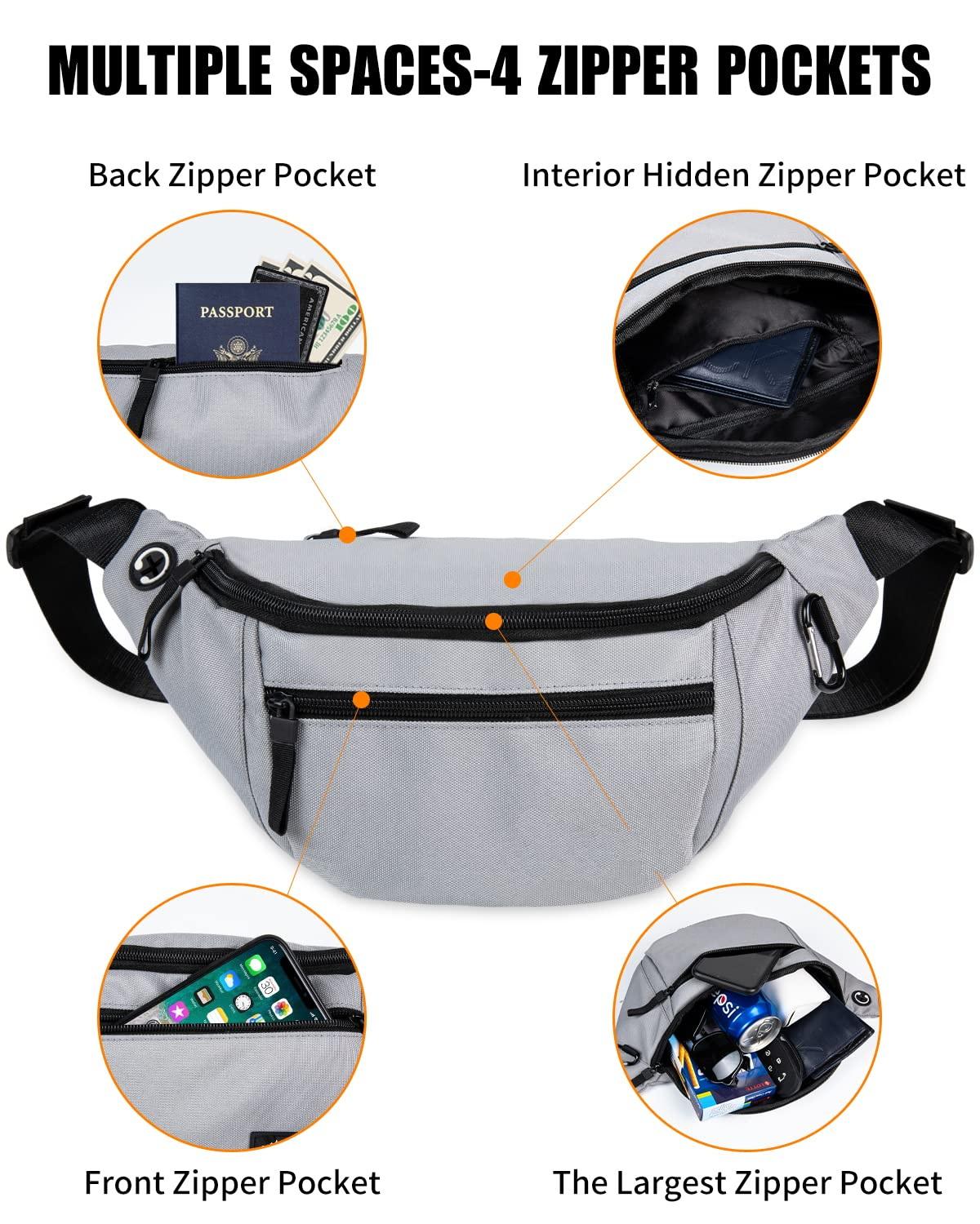 Sac de ceinture de course étanche Fanny Pack pour femmes et hommes avec 4 poches zippées
