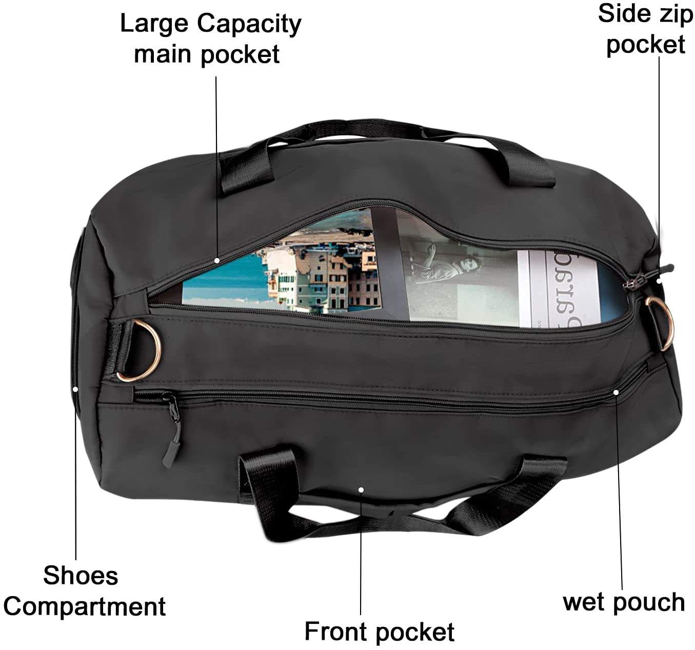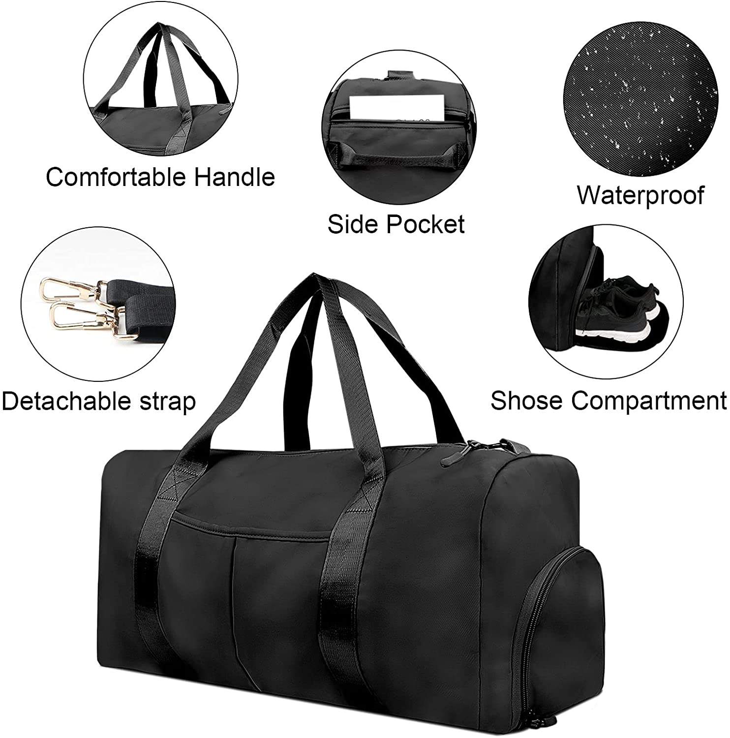 Domicile / Produits / Sac de voyage / Sac de marin / 2022 nouveau sac de voyage noir sac de sport épaule week-end sac de voyage pour femmes sac d'exercice