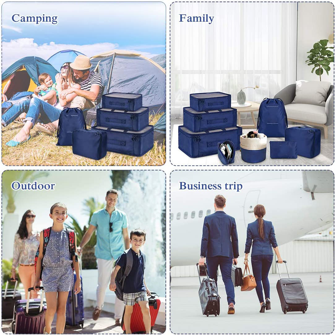 8pcs organisateurs de bagages organisateurs de voyage ensemble de voyage cube de voyage - 3 cubes pour l'emballage - 3 poches - 1 cube pour les sous-vêtements