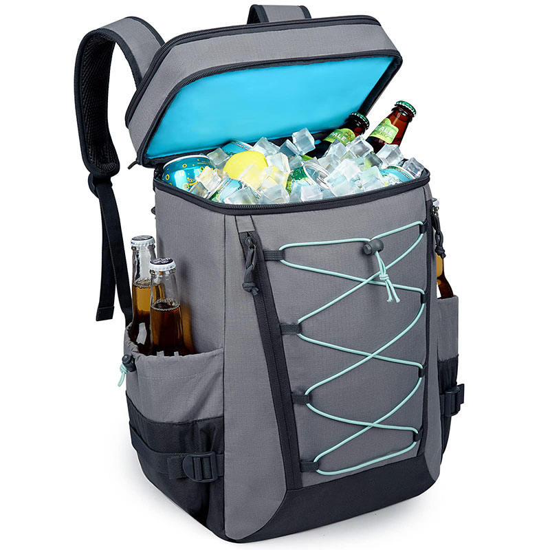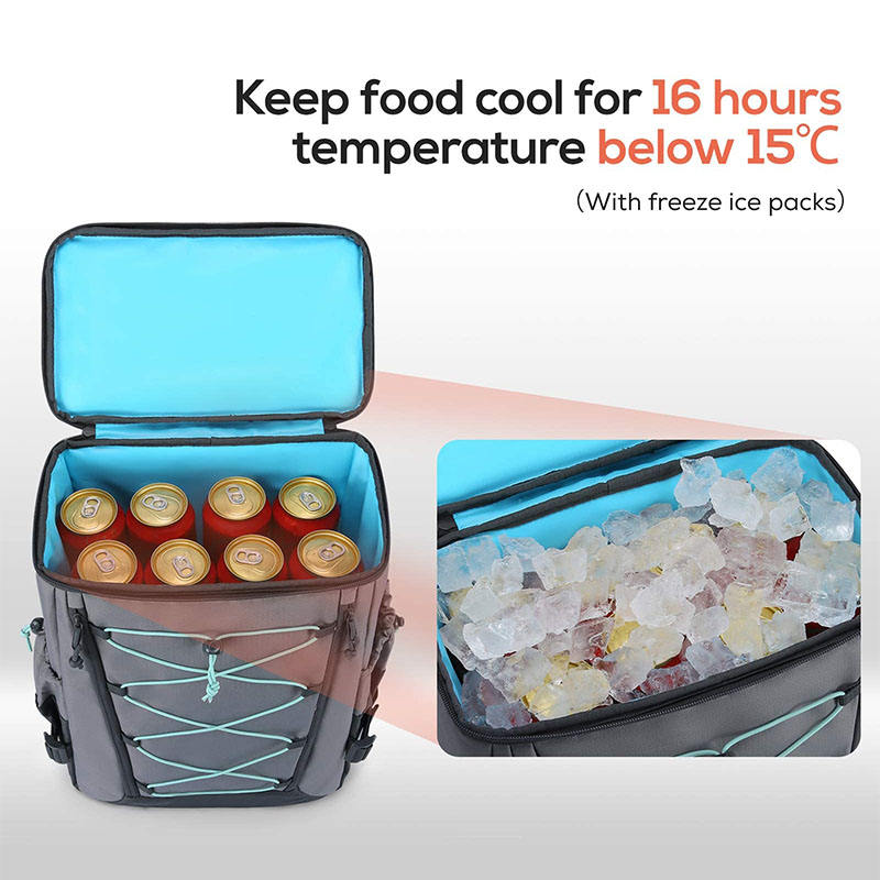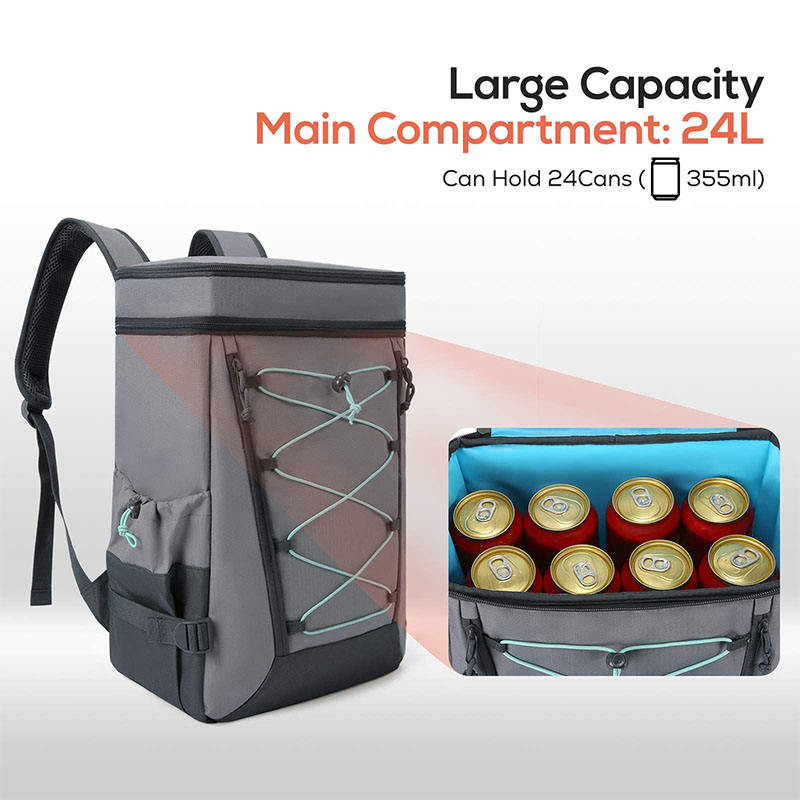 Domicile / Produits / Sac isotherme et sac à lunch / Une glacière / Camping en plein air gris étanche grand 24 canettes bière refroidisseur doux déjeuner sac à dos sac de refroidissement sacs isothermes