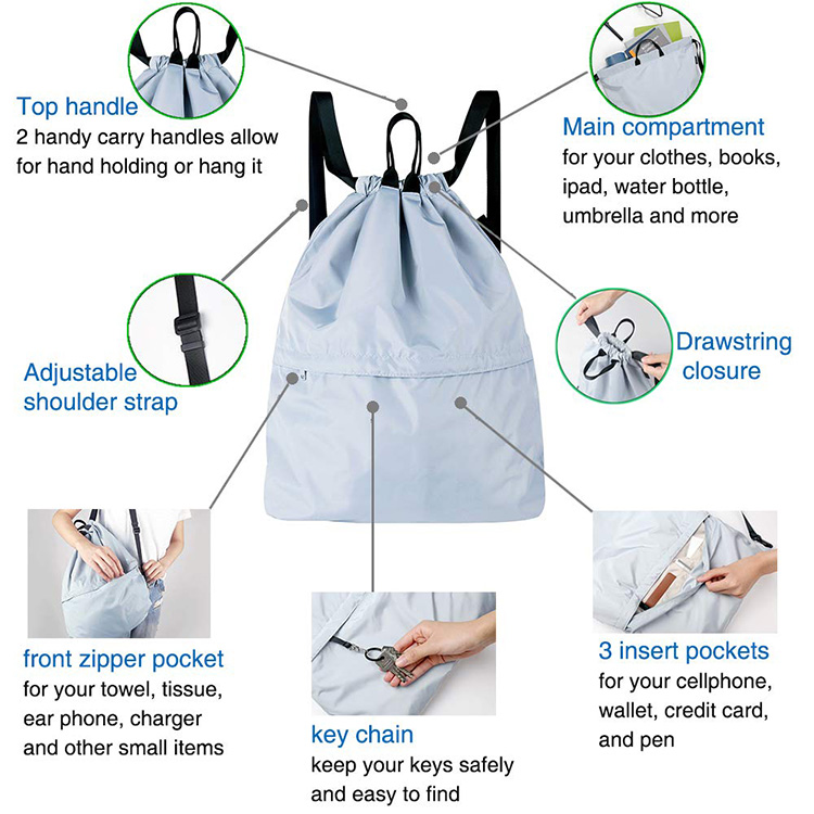| Sac à dos léger de sac à dos de cordon de yoga de sport de gymnase de polyester durable fait sur commande en gros | ||