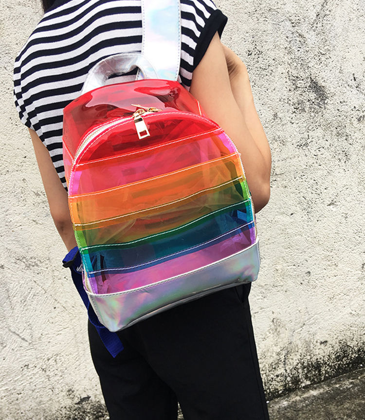 Sac à dos holographique transparent arc-en-ciel