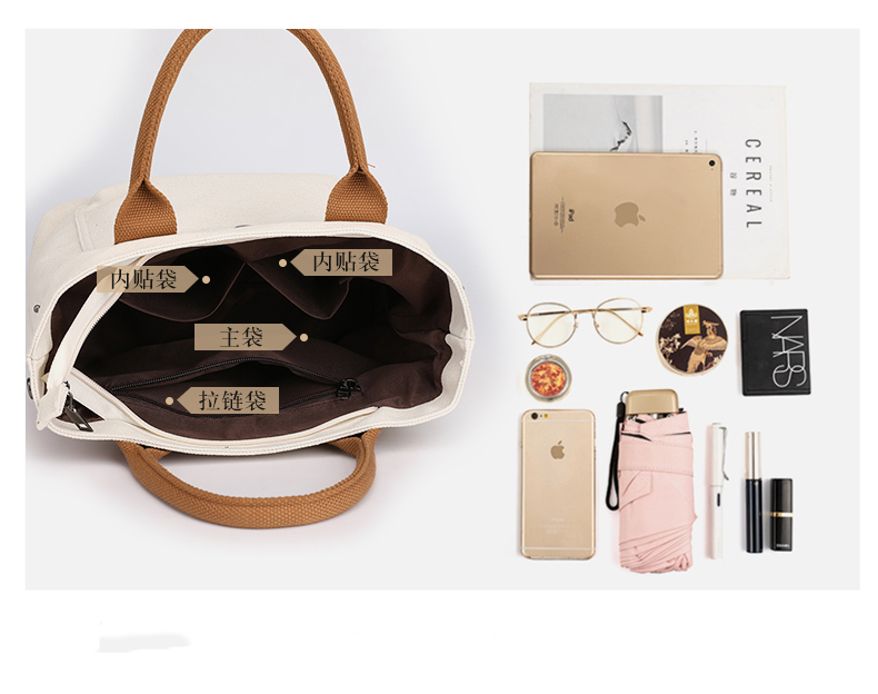 | Sac fourre-tout décontracté en toile de coton de grande capacité pour femme | ||