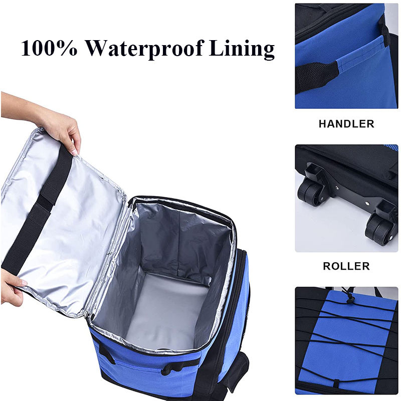 Domicile / Produits / Sac isotherme et sac à lunch / Une glacière / Grand sac isotherme pliable à roulettes 43L isotherme à roulettes glacière souple ultra compacte avec roulettes et poignée