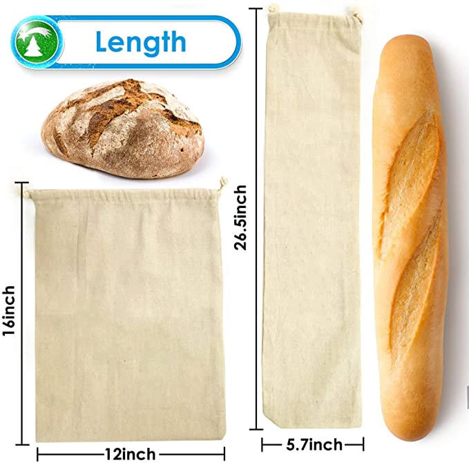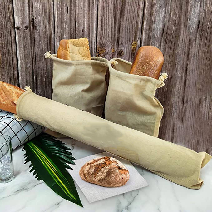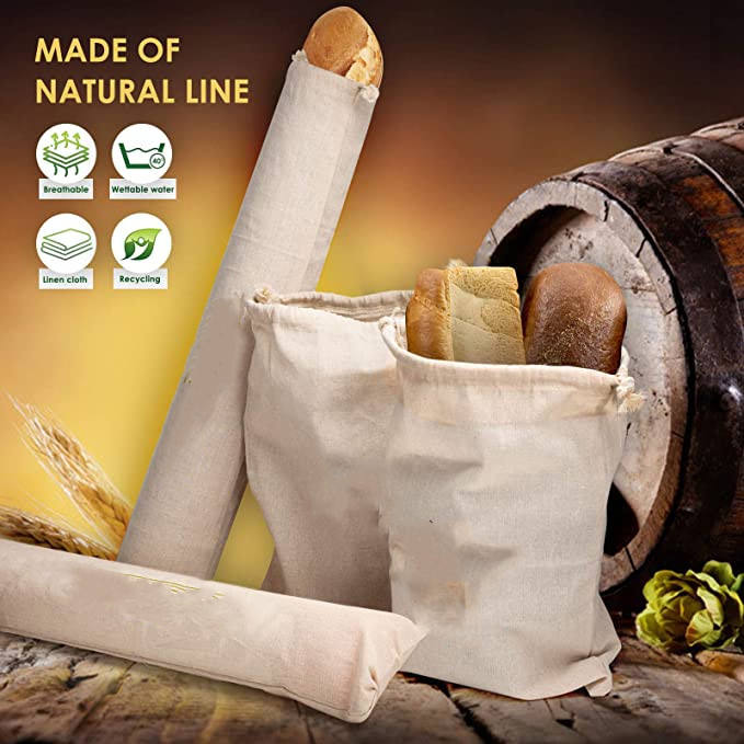 | Grands paquets réutilisables de 4 sacs à pain en lin biologique Sacs à pain en coton respectueux de l'environnement Idéal pour le pain fait maison | |