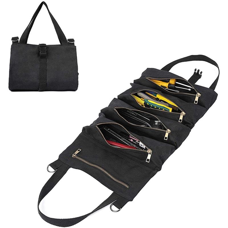 | Nom | Heavy Duty Tool Electrician Canvas Wrench Roll Up Pouch Tool Zipper Carrier Tote Bag with Long Handle | ||||||