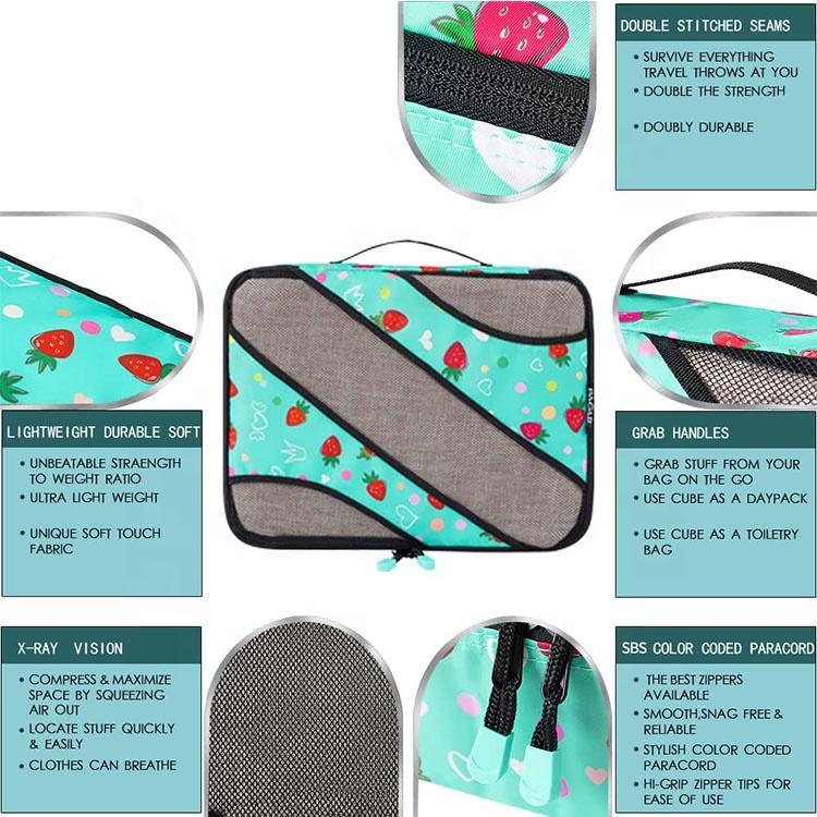 Compression personnalisée 6 pièces ensemble valise organisateur bagages sac en tissu voyage étanche compression emballage cubes