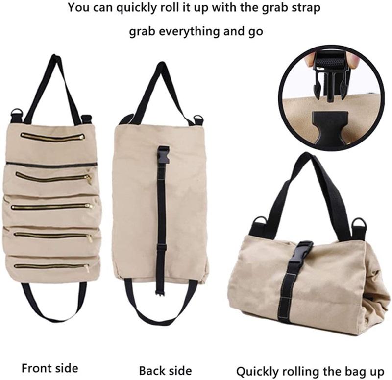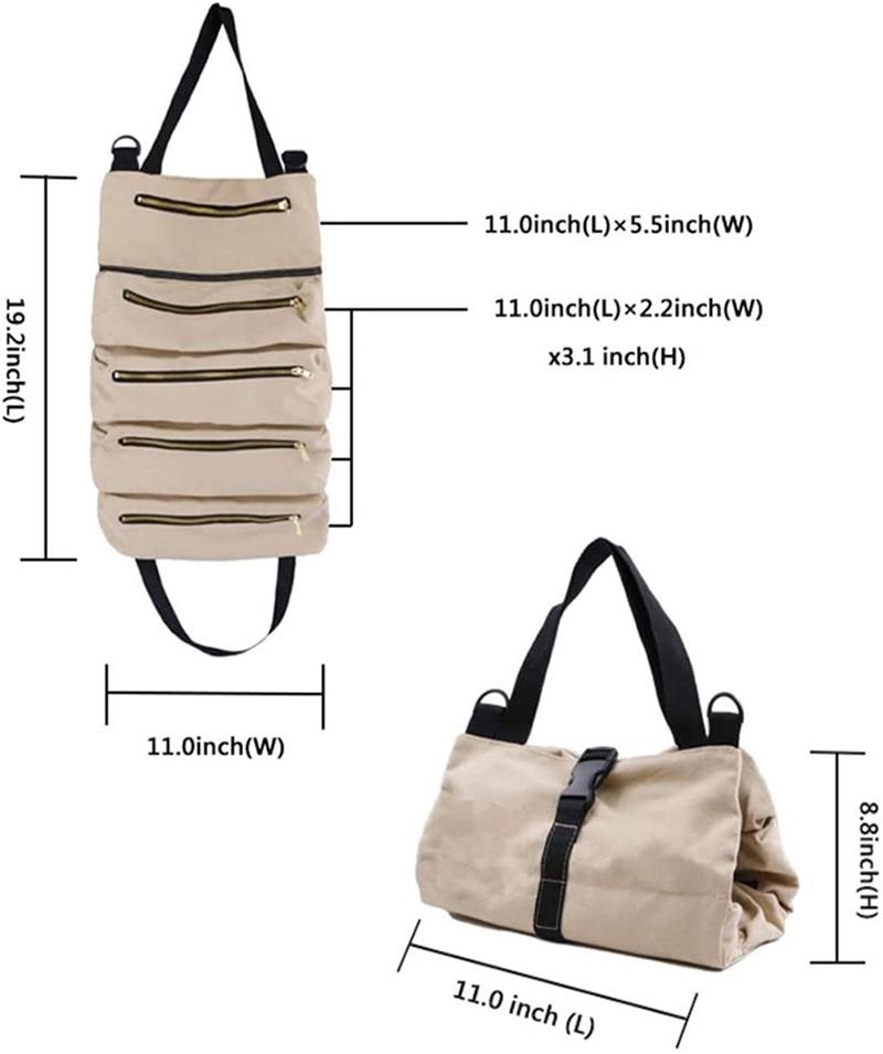 | Nom | Organisateur d'outils en toile multi-usages Rangement pour électricien Sac à outils pliable à roulettes avec 5 poches zippées | ||||||