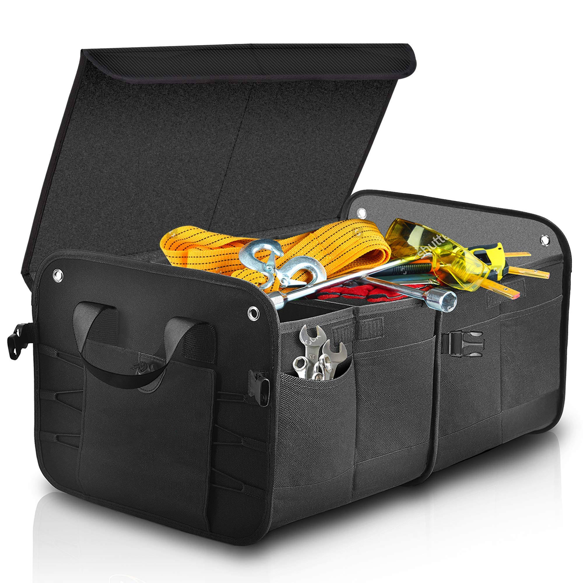 Domicile / Produits / Sac organisateur / Organisateur de voiture / Organisateur de coffre et siège arrière de voiture pliable, organisateur de rangement de coffre avec sangles réglables