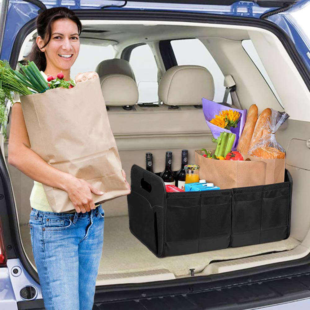 Organisateur de coffre pliable avec poignées renforcées, adapté à toutes les voitures