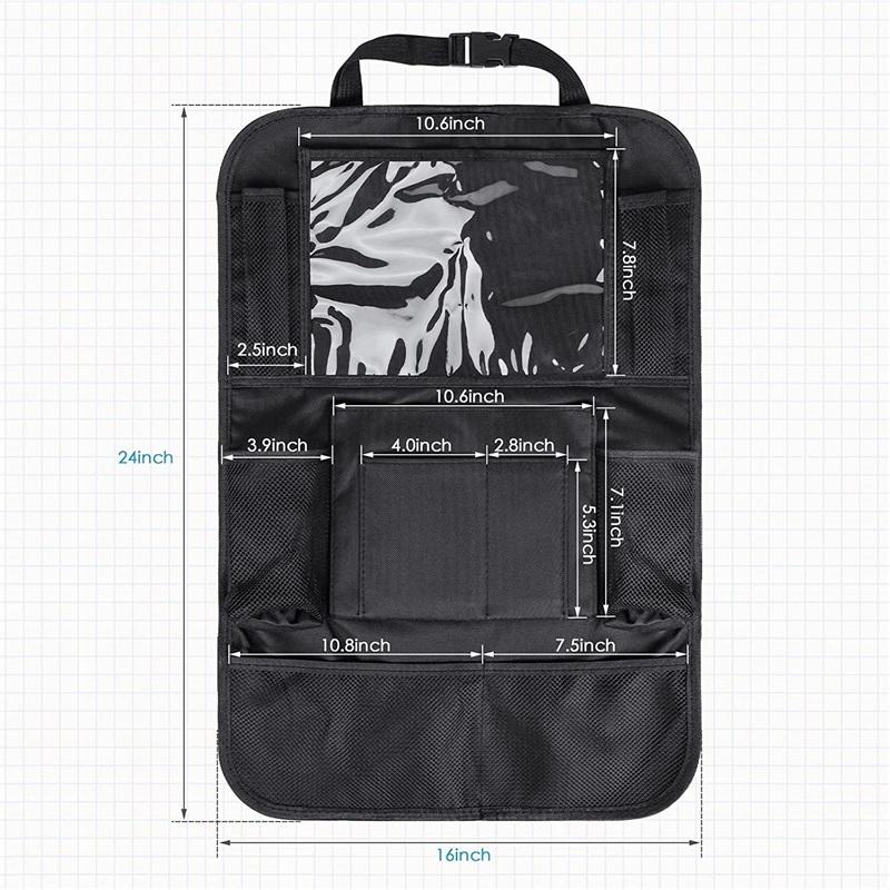 | Nom du produit | Organiseur de siège arrière de voiture 2 Pack étanche multi-poches organisateur de siège de voiture tapis de coup de pied avec support de tablette à écran tactile | ||||||