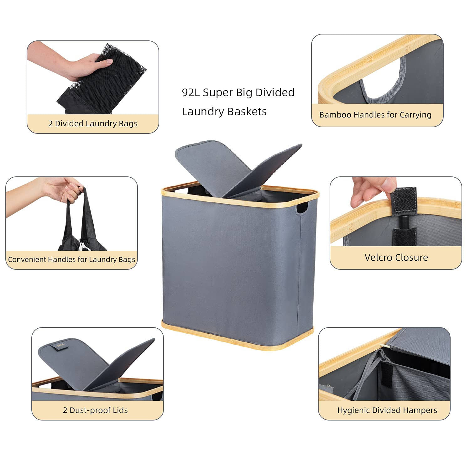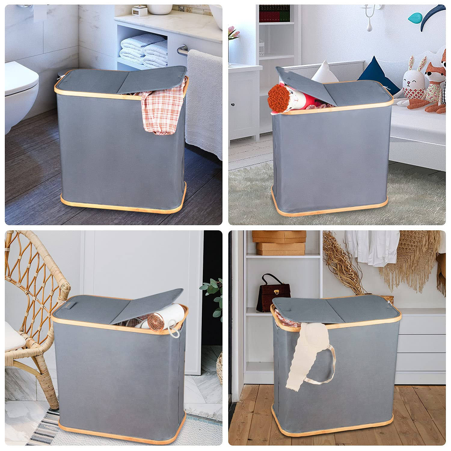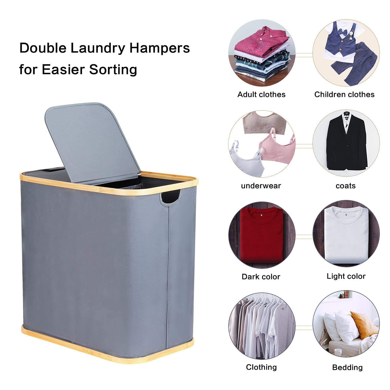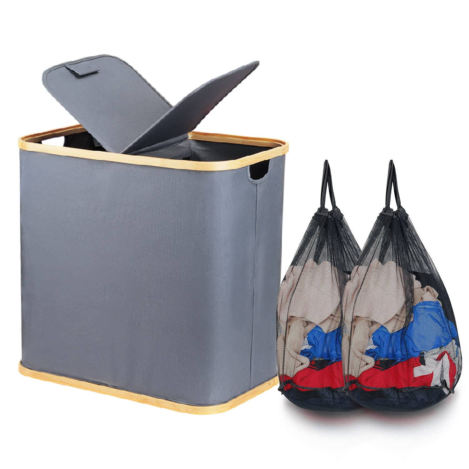 Domicile / Produits / Sac de voyage / Cubes d'emballage de voyage / Paniers à linge doubles avec couvercles pliables avec sacs à linge détachables, panier à linge sale avec poignées pour vêtements de jouets