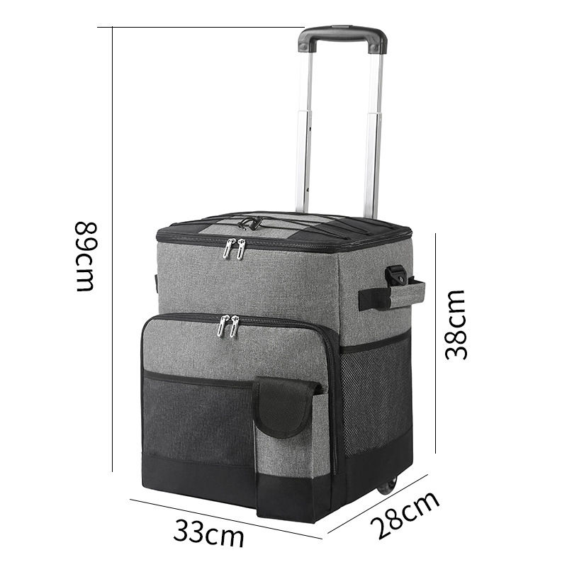 Domicile / Produits / Sac isotherme et sac à lunch / Panier repas / Pique-nique BBQ fourre-tout isolé transporter thermique livraison de nourriture déjeuner pliable roulettes chariot sac isotherme