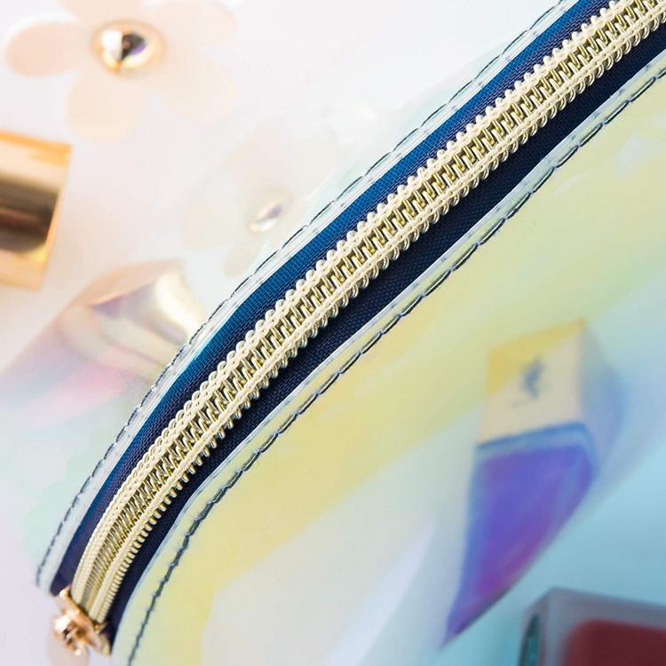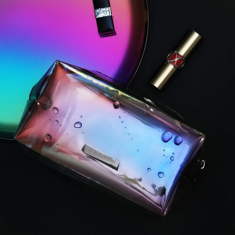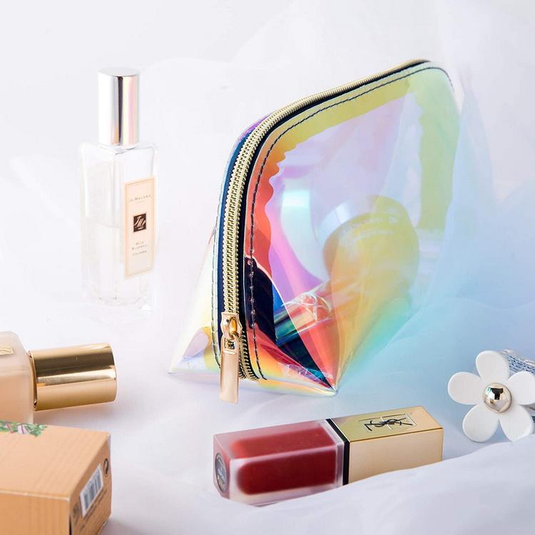 | Nom | Pochette d'embrayage d'hologramme de triangle imperméable Sac cosmétique de maquillage irisé de PVC holographique | ||||||