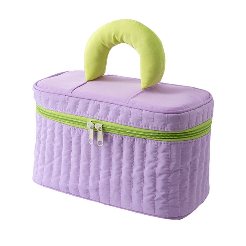 Promotionnel multi couleur portable élégant bon prix puffer violet suka seersucker sac cosmétique femmes maquillage pour voyage