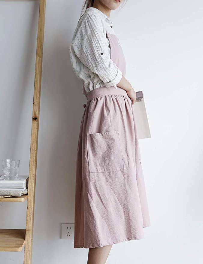 | Nom | Robe chasuble mignonne avec des liens à la taille longue Ligne de coton Japonais H Retour Smock Bib Cuisine Cuisson Cuisson Rose Tabliers Adultes |