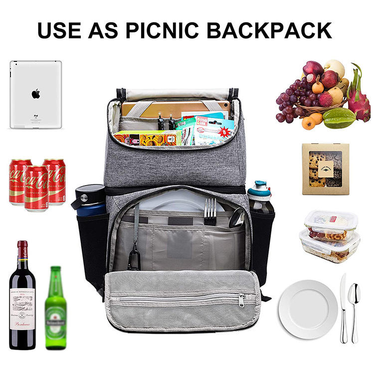 | Sac à dos de barbecue de pique-nique de voyage multi-poches supplémentaires avec compartiment plus frais | ||