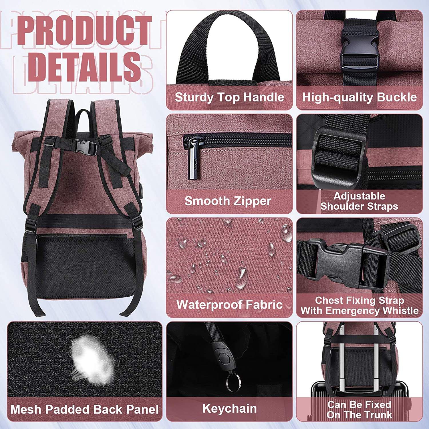 Domicile / Produits / Sac à dos / Sac à dos à roulettes / Sac à dos léger grand sac à dos de voyage Roll Top Daypack School Business sac à dos pour ordinateur portable avec port de charge USB