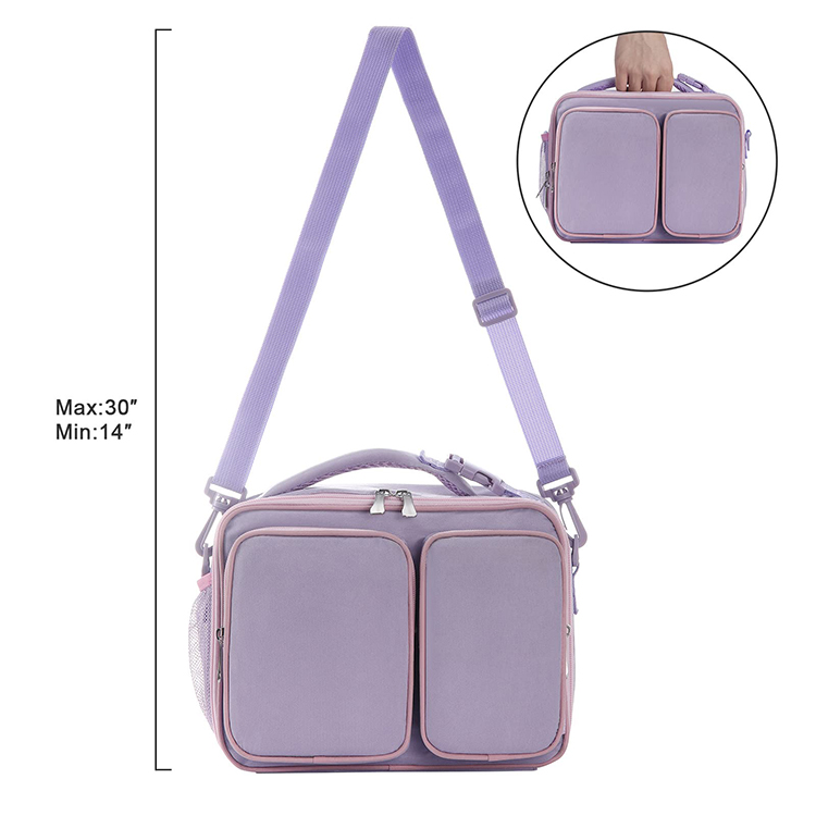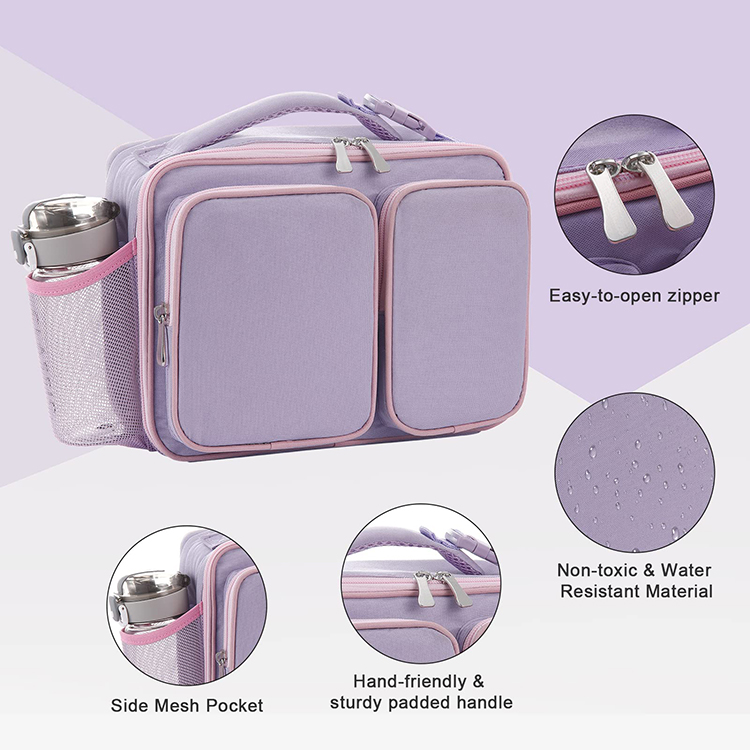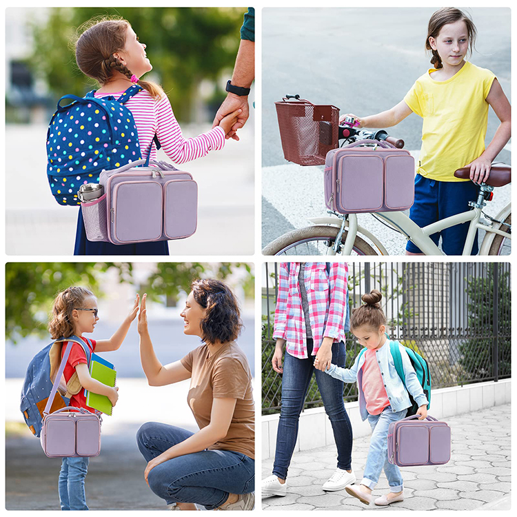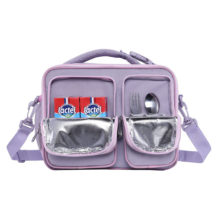 | Sac à lunch isolé personnalisé violet clair en gros sac isotherme pour boissons alimentaires thermiques pour enfants | ||