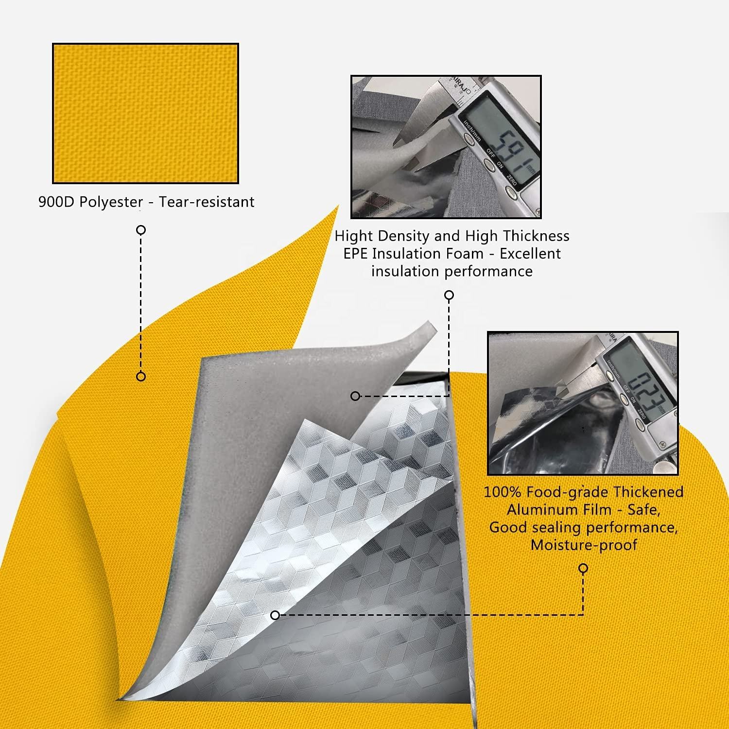 | Matériel | polyester + mousse EPE 5mm + film aluminium | ||||||