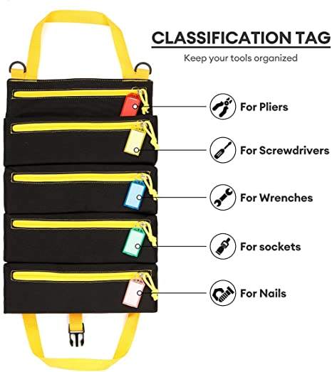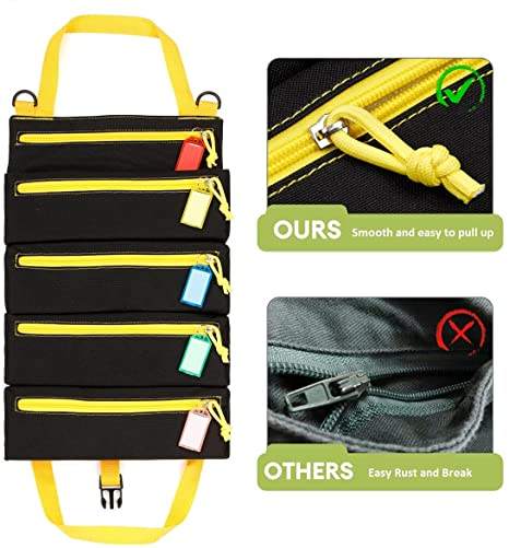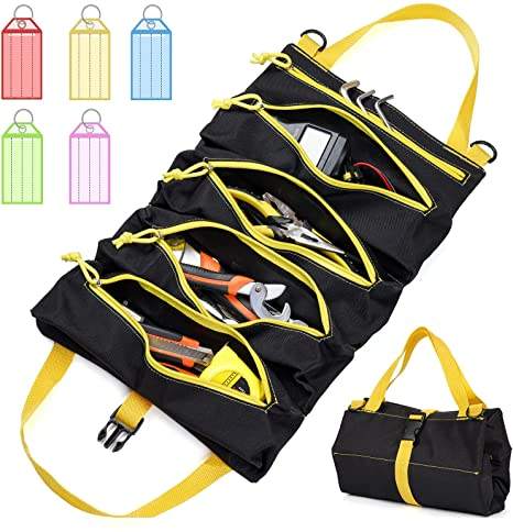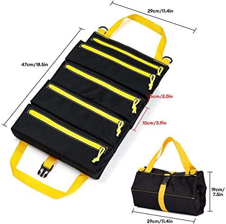 | Sac à outils à roulettes pochette à clé en toile portable avec 5 poches à glissière outil enrouleur organisateur | ||