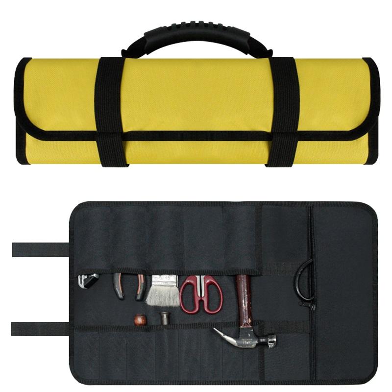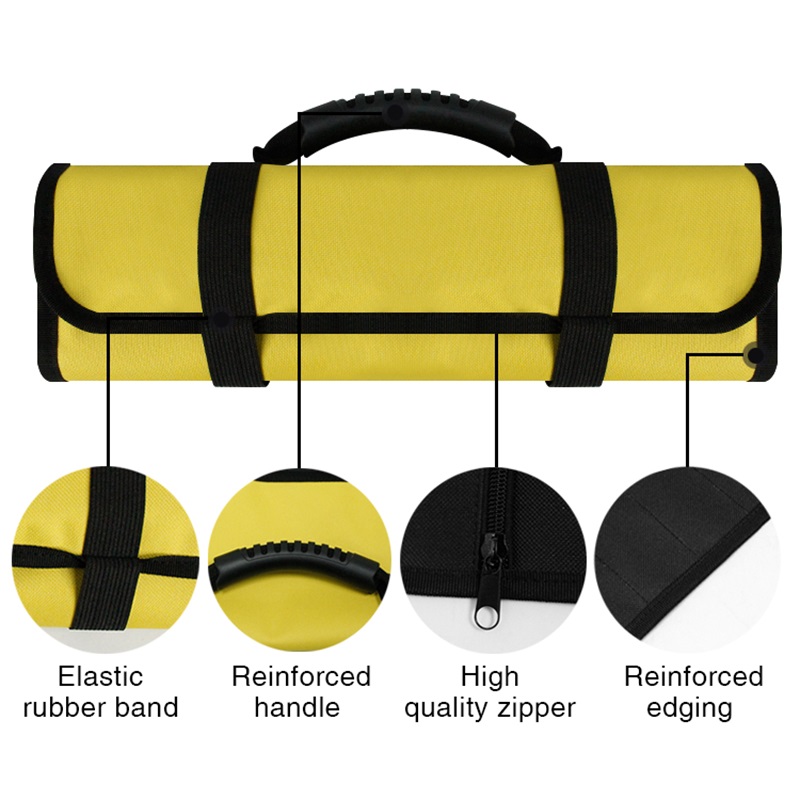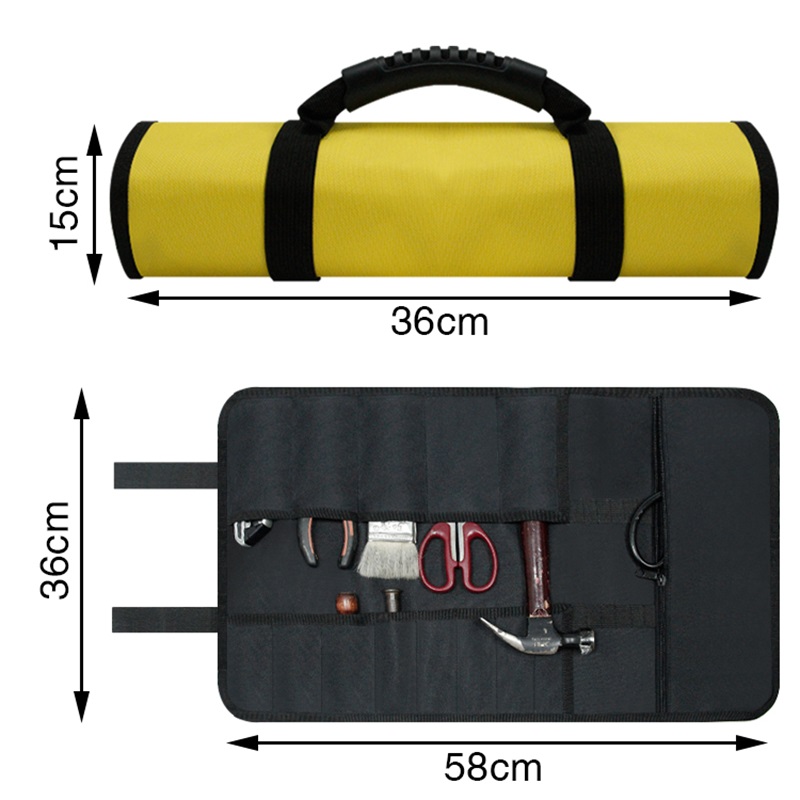| Nom | Sac à outils enroulable pour électricien étanche personnalisé Organisateur de rouleau de clé à bâche 13 poches Sac à outils enroulable avec poignée portable | ||||||