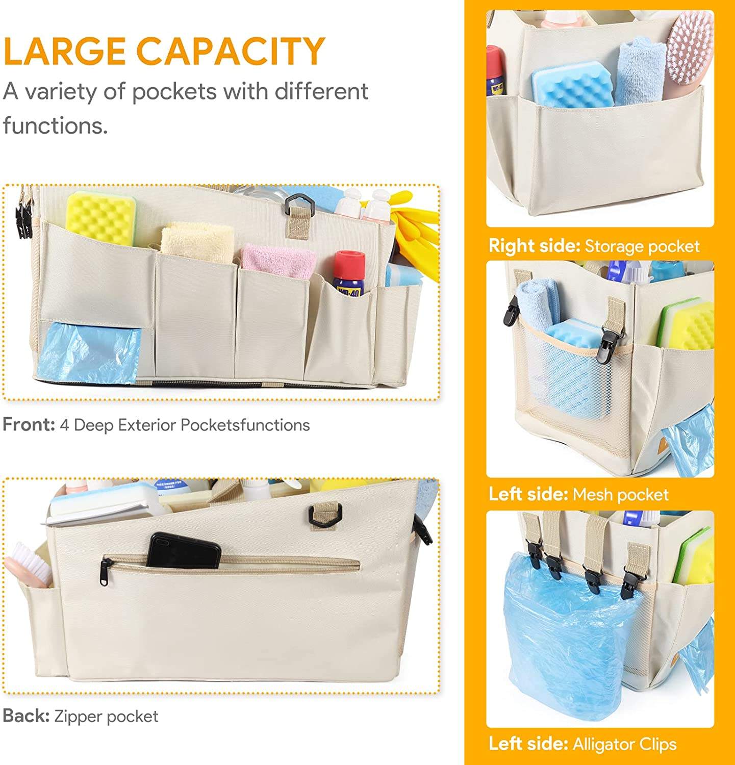 Domicile / Produits / Caisse à outils / Sac de nettoyage et de finition portatif pour hôtel portable 600D Kit de nettoyage pliable portable Sac de rangement pour outils propres