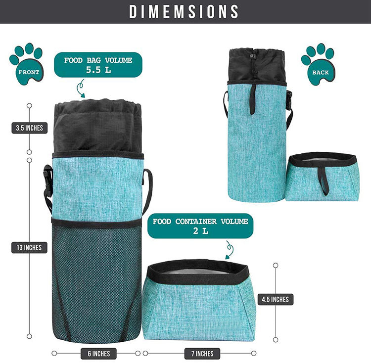 | Nom de l'article | Sac de rangement pour collations pour animaux de compagnie avec ensemble de bols | |||