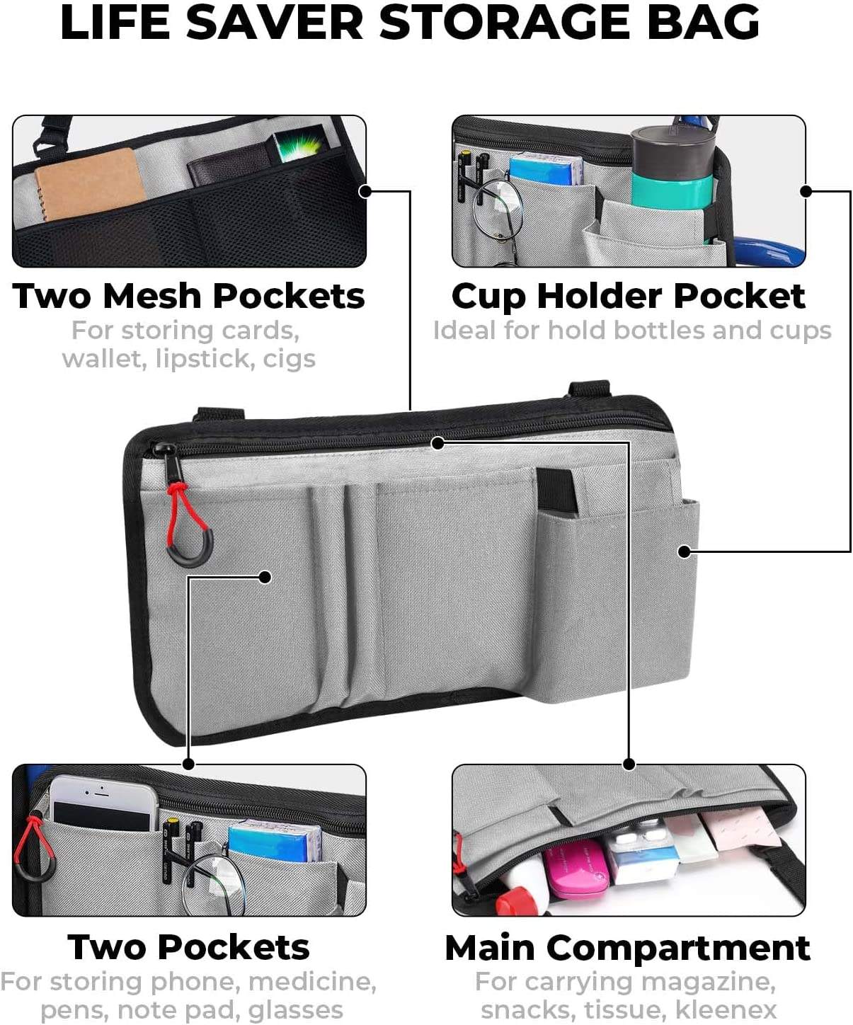 | Nom | Sac de rangement Portable pour marcheur sac latéral d'épicerie pour fauteuil roulant pochette organisateur d'accessoires pliable avec porte-gobelet | ||||||