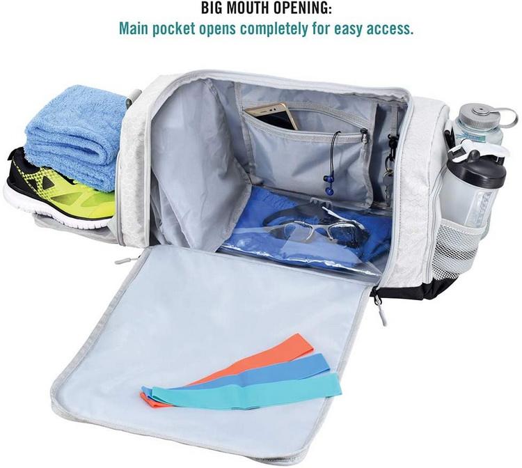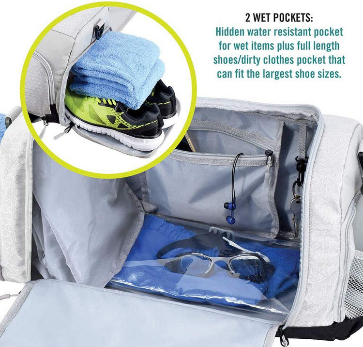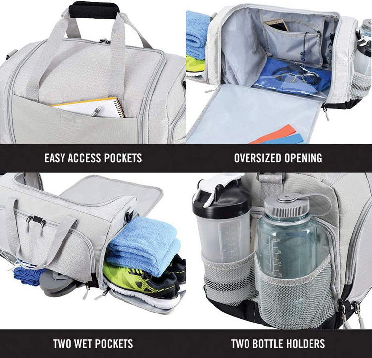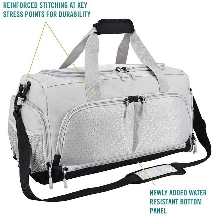 Sac de sport gris de haute qualité hommes de gym imperméable à l'eau sac de voyage anti-odeur en gros