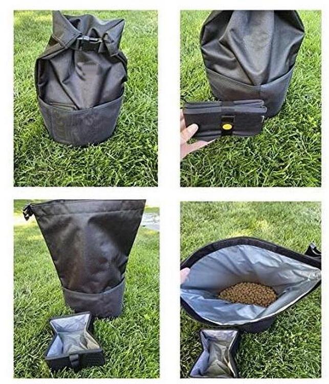 Domicile / Produits / Sac pour animaux de compagnie / Sac de transport de nourriture portable conteneur de stockage de collations sac de voyage pliable pour nourriture pour chien avec bols pliables