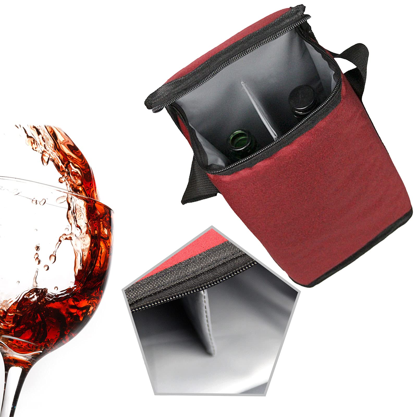 | Logo personnalisé 2 bouteilles de vin fourre-tout transporteur étanche isolé rembourré polyvalent toile sacs à vin réutilisables pour le voyage | ||