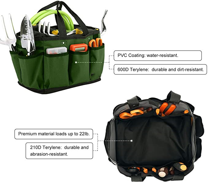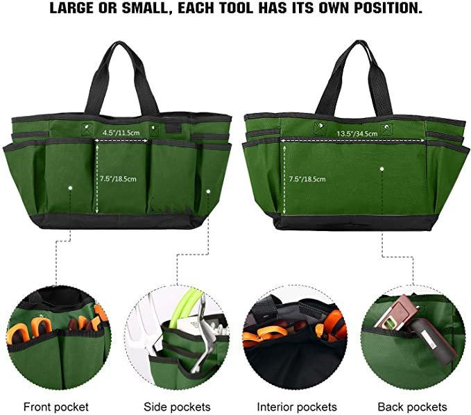 | Sac fourre-tout de jardinage résistant à l'usure de 14 pouces sac de rangement d'outils de jardin réutilisable et organisateur de maison avec poches | ||