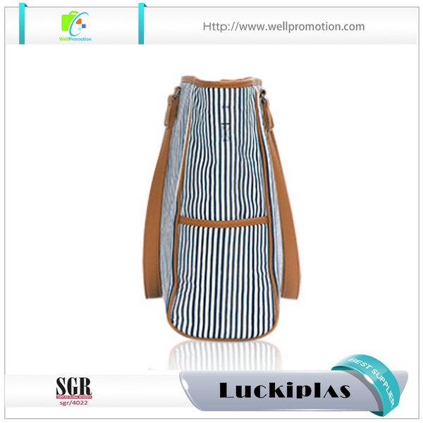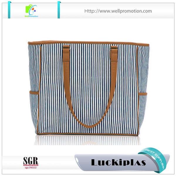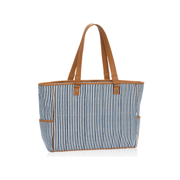 Nom | Sac fourre-tout shopping de plage en toile à bandes verticales pour femmes avec poignées en cuir | Frais d'échantillonnage | 0-150USD |