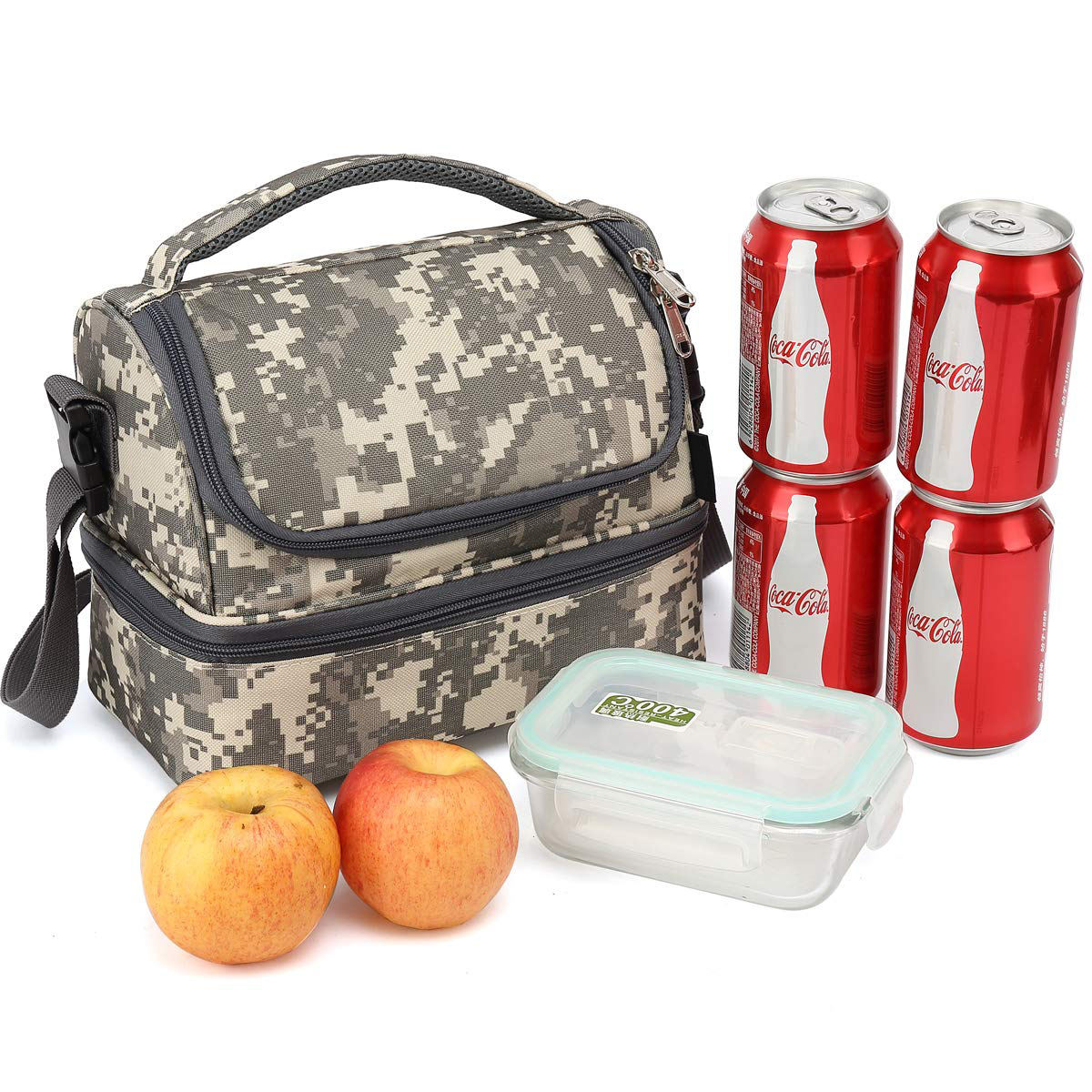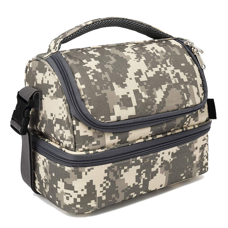 | Sac isotherme de fruits de boîte à lunch à double compartiment de grande capacité sac thermique isolé par camouflage personnalisé pour les enfants | ||
