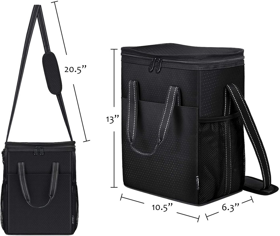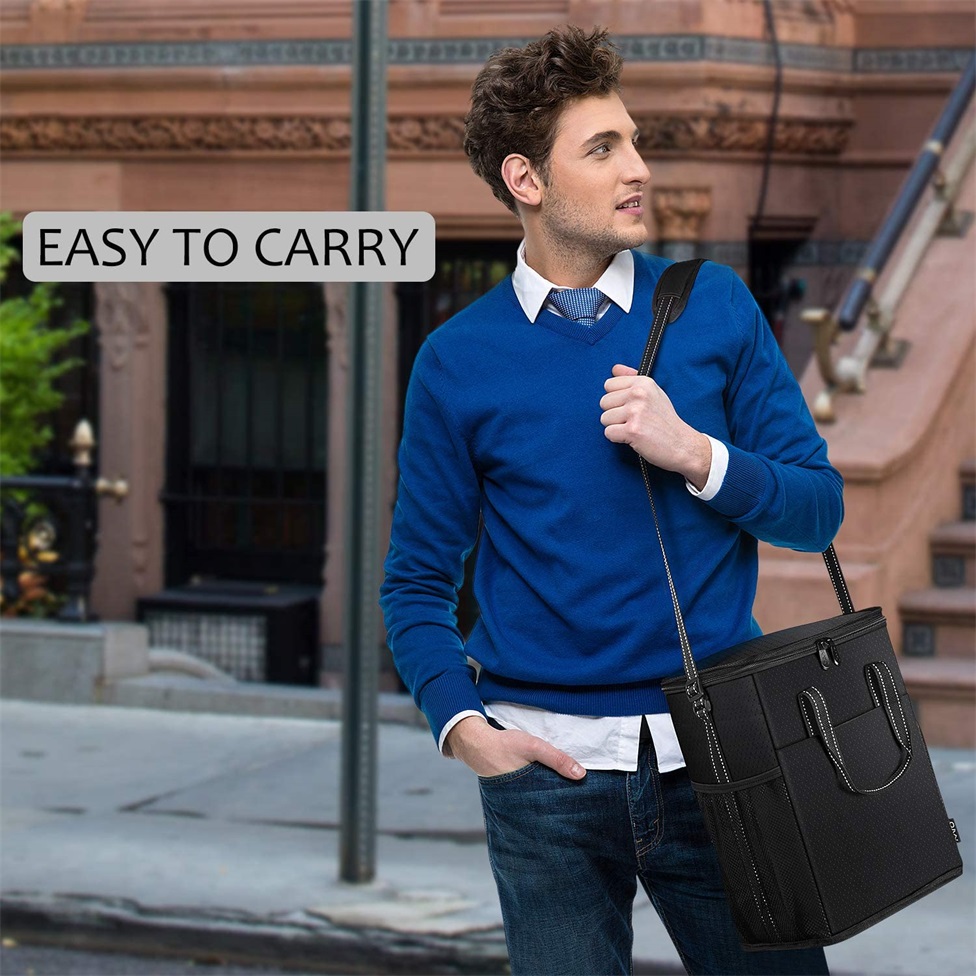 | Nom | Sac refroidisseur de vin portable étanche Sac fourre-tout isolé pour vin de pique-nique au champagne avec fermeture à glissière extensible et bandoulière rembourrée | ||||||