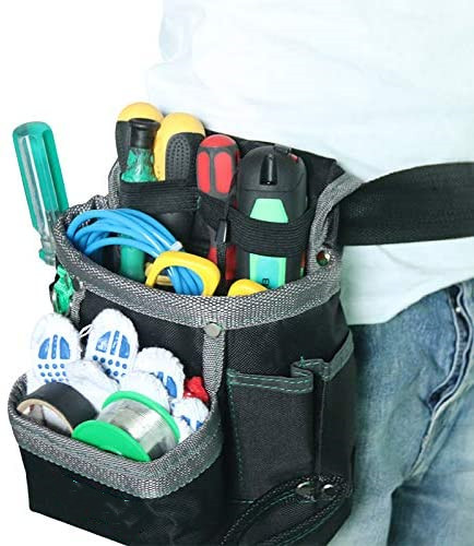 Sacoche à outils noire avec 6 poches multiples pochettes à outils pochettes de ceinture à outils d'électricien et taille en matériau Oxford robuste