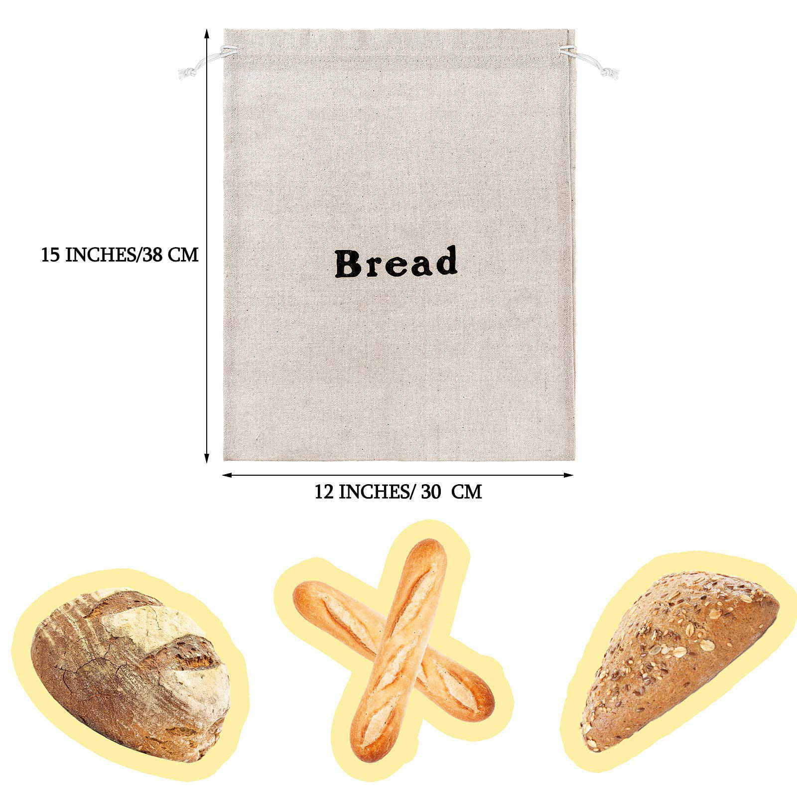 Sacs à pain en lin en gros Grands sacs à pain à cordon réutilisables Sacs Stockage des aliments à la main pour la boulangerie