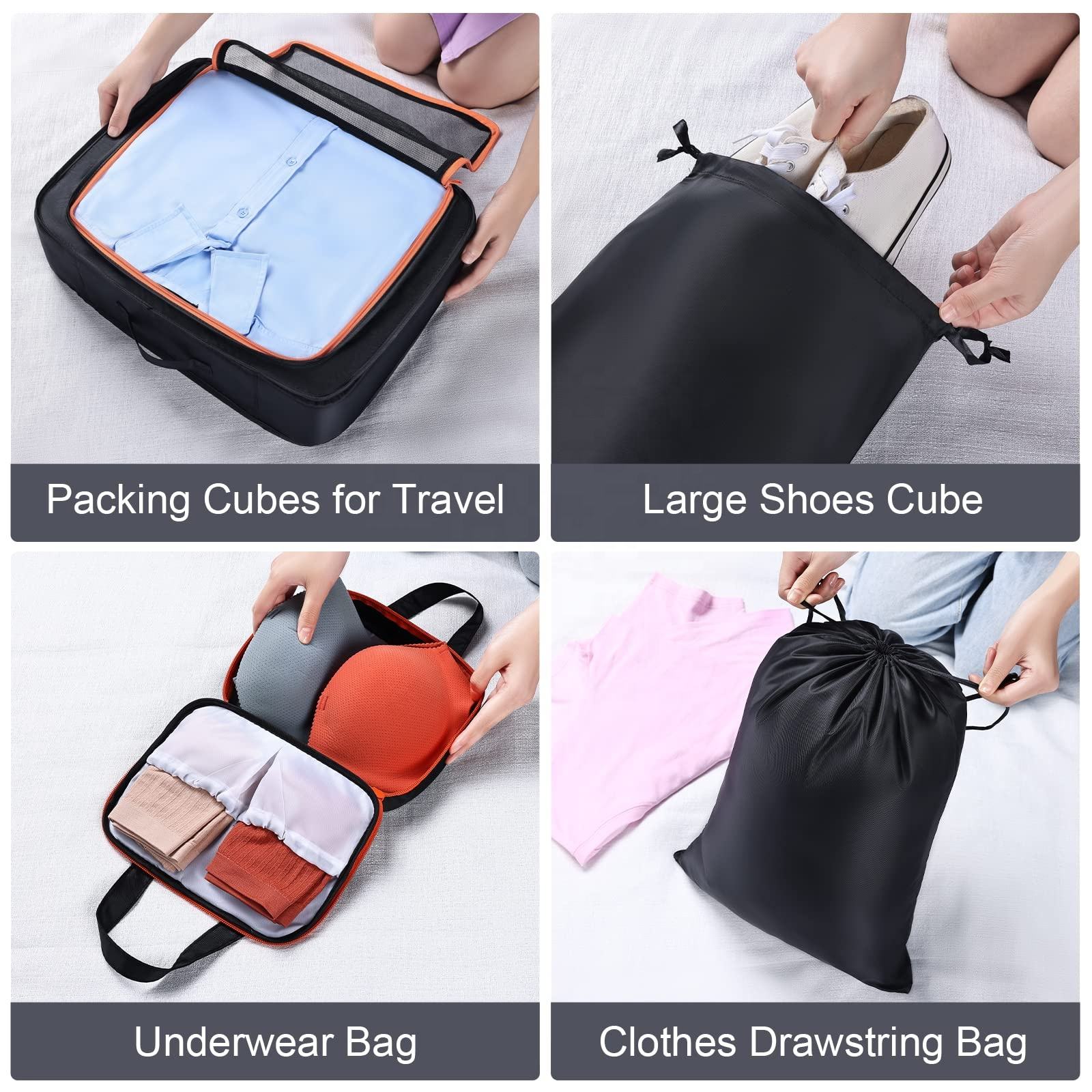 Logo personnalisé étanche homme voyage bagages emballage cubes de rangement ensemble avec sac à chaussures durable pochette de voyage organisateur