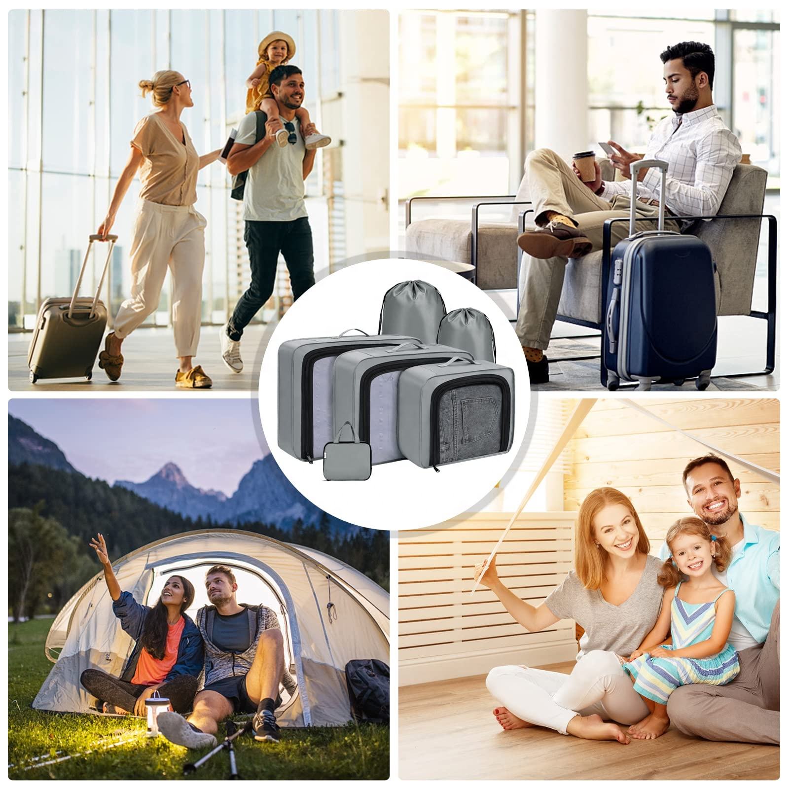 Lot de 8 cubes de rangement promotionnels de haute qualité organisateur de bagages emballage cube ensemble camping voyage cubes pour l'emballage