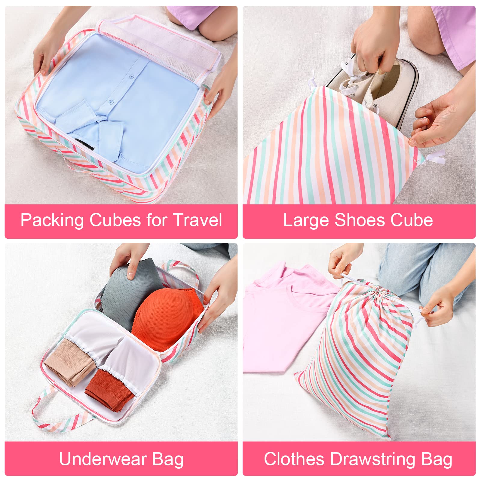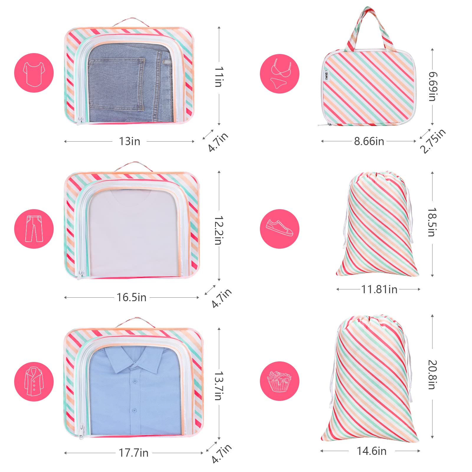 Compression extensible filles sous-vêtements sac de rangement emballage cubes 6 pièces valise organisateur de voyage trousse de toilette cosmétique sac ensemble