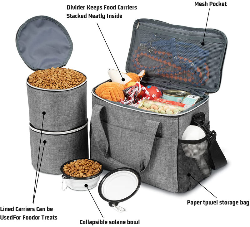 Week-end chiens chats voyage sac à dos approuvé par la compagnie aérienne fourre-tout sac de transport de nourriture chien de compagnie organisateur de sac de voyage avec multi-fonction