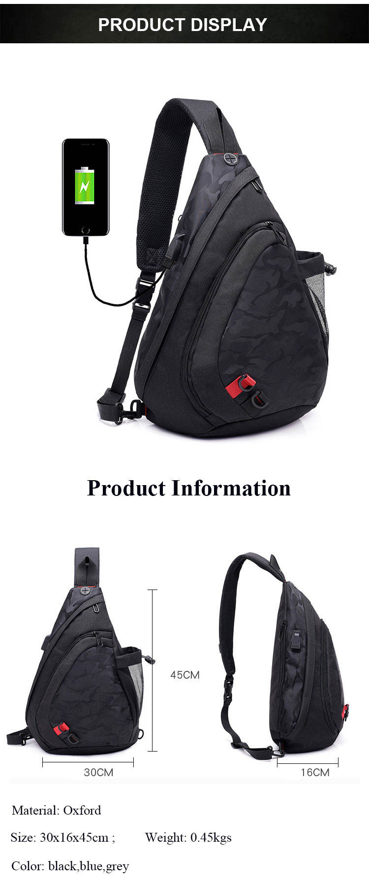 • Nom du produit: Sac à dos à bandoulière