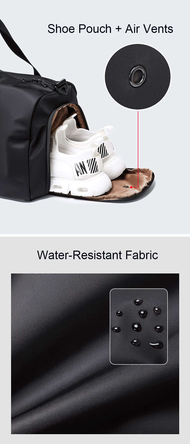 sac de sport imperméable à l'eau avec logo personnalisé avec poche humide et compartiment à chaussures pour femmes