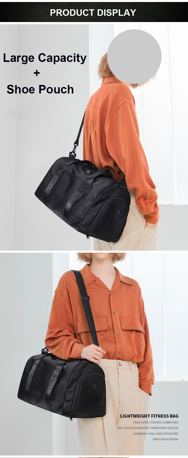 Domicile / Produits / Sac de voyage / Sac de marin / sac de sport de sport noir étanche personnalisé avec compartiment à chaussures pour hommes et femmes